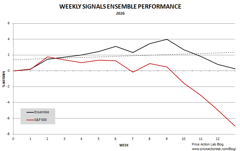 The six-strategy ensemble’s average year-to-date return is 0.2%, while the benchmark (the S&P 500 index) has lost 7%. As a result, this week’s performance spread went from 580 to 720 basis points.